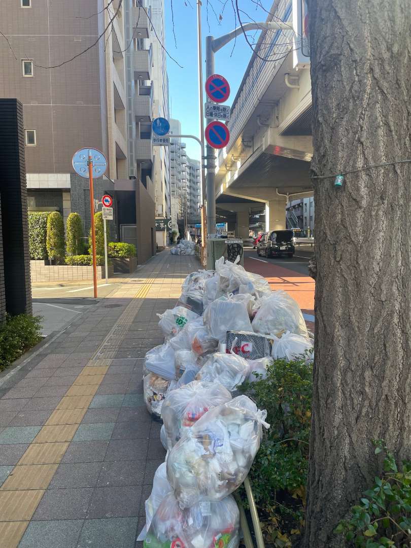 やはり、山盛りですね。歩道に溢れていました。ゴミ事情も月日と共に変わってきています。古くはサリン事件で街中からゴミ箱が無くなり、日韓W杯や五輪でまた撤去。慢性的な処分場不足や自然災害での大量な瓦礫処理など。遠いようで近く、生活に密接に関わっています。Twitterなどで発信できることから、芸人さんやコンビニ店員まで、ゴミ事情を発信しています。