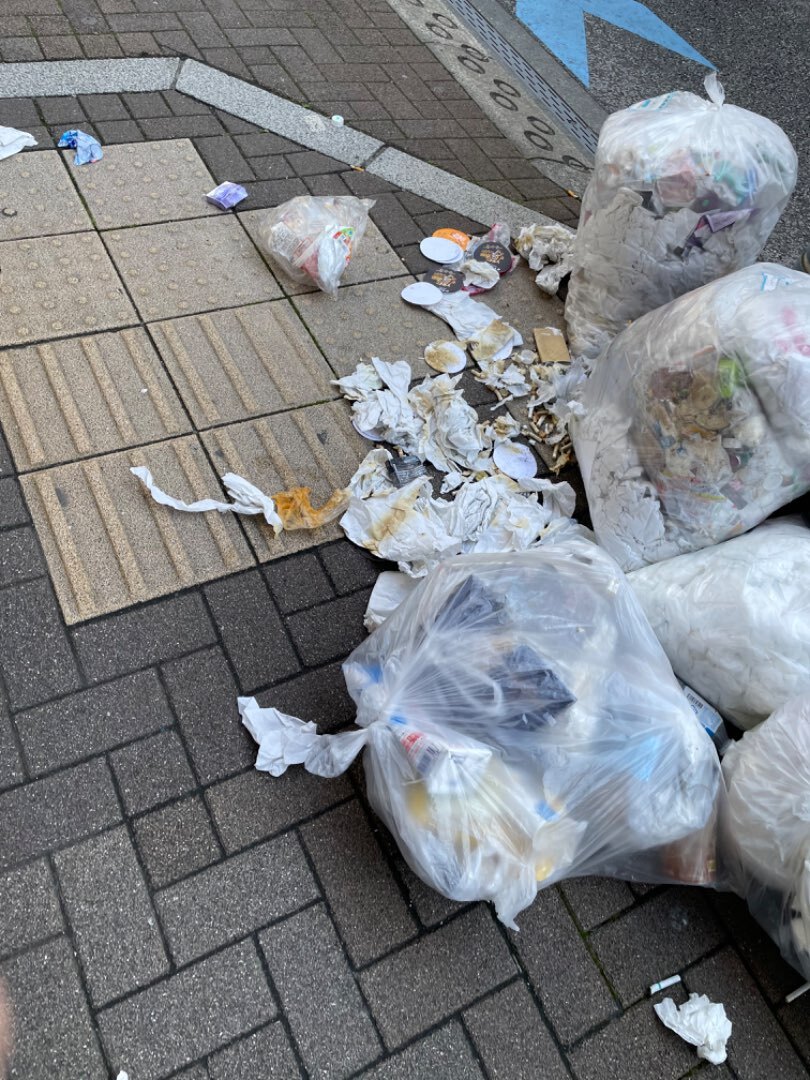 暖かい日々が続いているからでしょうか。毎朝カラスが元気です。最近は徒歩でテクテク出社する事が多くなっているのですが、弊社付近の「茶沢通り」の朝は大変です。飲食店が多く立ち並ぶこの通り。その数に比例して、ゴミもそれなりの量が出ます。人間にはゴミでも、カラスにはご馳走?なのか。狩りなのか。獲物を狙うハンターで毎朝大惨事になっています。。あまり美しいモノではないので、軽めの被害状況がこちら↓。