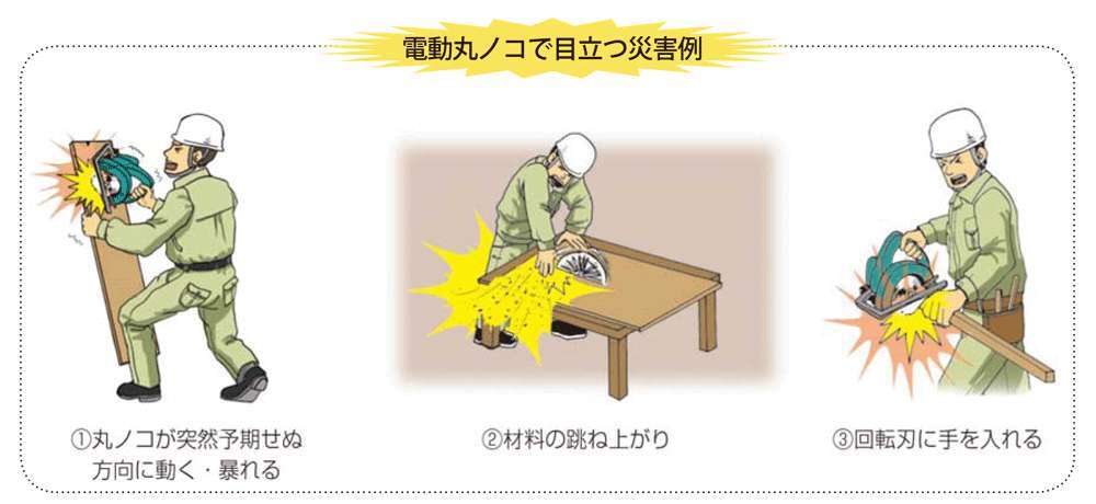 もはや流行語大賞決定。な感もありますキックバック。これは建設業界でも良くない事として有名です。が、お金の話ではありません。「丸ノコはキックバックが起こるから危ないよ。」って話です。キックバックが起こる原因はいくつかありますが、簡単に言うとノコギリの歯の部分が木材に挟まってしまい、その結果歯の回転に負担がかかり、丸ノコ自体が暴れまわってしまい、その反動で木材が跳ね返ってしまう現象です。