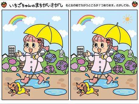 間違い探しが大好きです。カバー画像のようなものも嫌いではありません。太陽・てるてる坊主・ビル:犬の舌・あじさい・ボタン・長靴。でしょうか。日々の中でも無意識に探しているのかも知れません。なので、言い間違いとかにも敏感です。