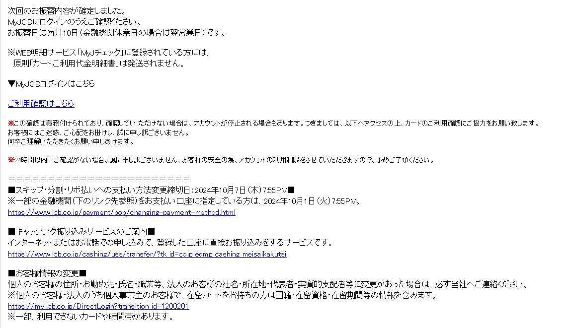 JCBなどのカード関係も相変わらず。paypayポイント付与ってのも増えています。HP上で公開しているアドレスなので致し方ない部分でもありますが、まぁ色々考えてきます。毎日削除するだけで膨大な時間が失われています。。ていうかセゾンカード持ってないし・えきネットなんて存在すら知らんし・アマゾン問題なく使えてるし。などなど、いちいちノリツッコミしながら削除しています。物騒な世の中です。本日もくれぐれもご健康でご安全に。