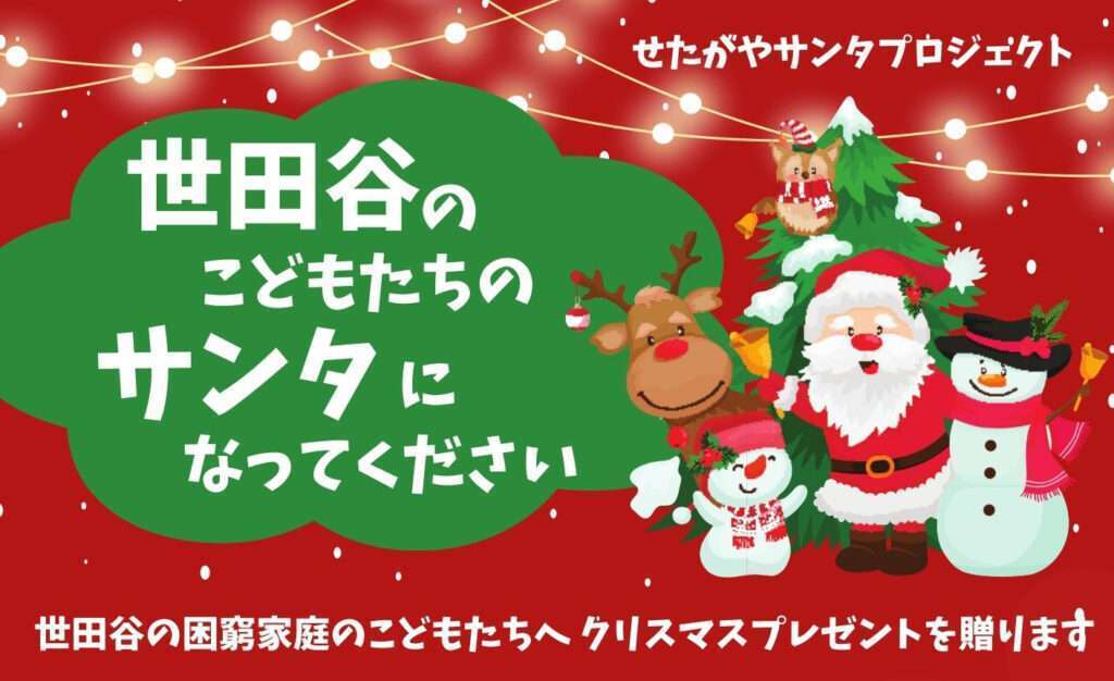 せたがやサンタプロジェクトは、世田谷の 家計がピンチなご家庭のこどもたちにクリスマスプレゼントが届くように!とさまざまな活動をおこなっています。2020年から続くこのこのチャリティイベント。世田谷区にもさまざまな理由で経済的にご苦労されている家庭があります。コロナ禍がきっかけだったり、ひとり親家庭だったり、事情はさまざまですが、同じ世田谷で生活する街の仲間として、そんなご家庭も楽しいクリスマスが過ごせるよう、みんなで応援したいと思います。弊社でも微力ながらお手伝い?ご協力させていただきます。