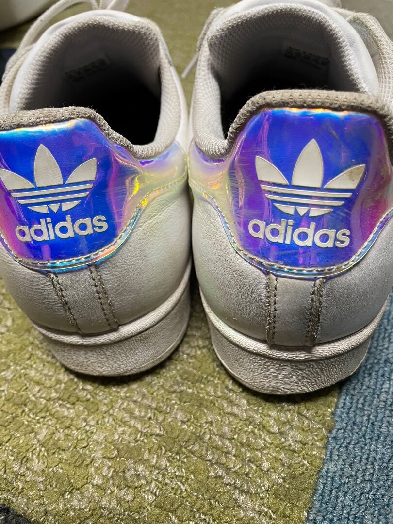 こんなお仕事をしていますと、一年の363日は作業着です。安全靴を必要としない業種?ですので変えられるのは「靴」だけ。オシャレは足元から。十数年履き続けている靴。それがアディダスSUPERSTAR。スーパースターが大好きです。カバー画像は現在のスーパースター。紫のキラキラがお気に入り。先日の畑仕事で汚れてしまいましたが、これでもお掃除したのです。仕事したり歩き回ったりで、カカトがすり減ったら交換の合図。だいぶ減ってきましたね。。