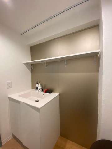 こちらもダイノックシートを貼り。棚を付け、目隠しのカーテンレール。
