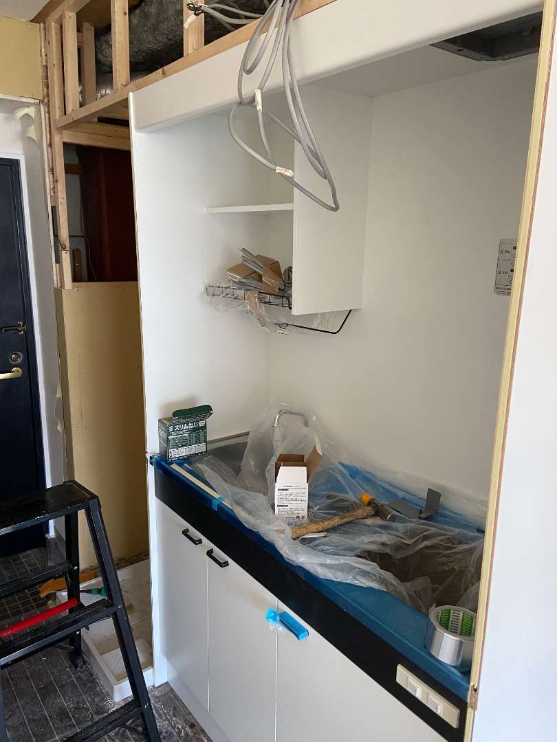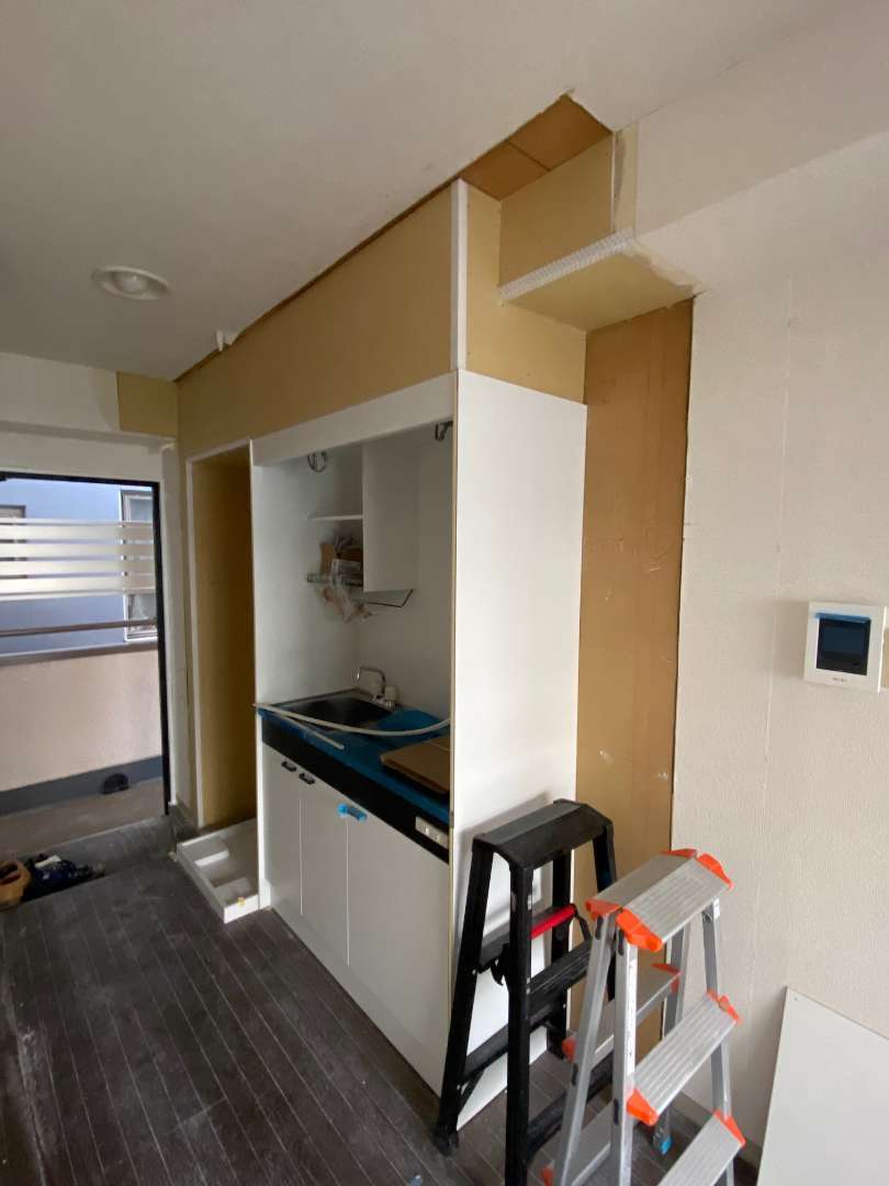 先日の続きです。。本日のメインはミニキッチン設置+に伴うボード工事です。ダクトのルートを確保しつつ、違和感のない空間を作ります。またまたリフォームあるあるですが、図面などありません、、決まり。も特にありません。。職人の経験と勘だけで進めます。この過程を自身の判断で出来るかどうか。が、大きな分岐点です。指示ありきの指示通りの作業(これはこれで素晴らしいのですが)指示なしの作業。これが難しいのです。。腐ったカボチャ頭をフル回転させて仕上がりをイメージします。。