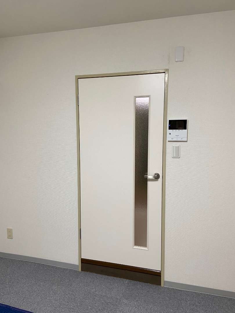 いつの頃からか。。。扉は取り外され。。枠だけになっていた物件。新たに扉を制作取付いたしました。一発でバッチリ決まりました。