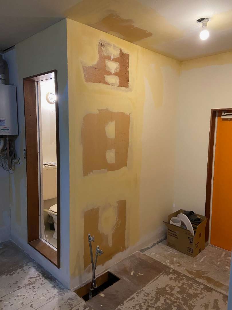 さあさあW杯開幕まで後2日! 完全な俄かファンですが、やはり開催中は気になりますね。がんばれニッポン。 こちらも着々と進めております。下地処理。ここからどんどん変わっていきます。表装をやりだすとあっという間に別世界。どんなお店になっていくのか、またお知らせします。