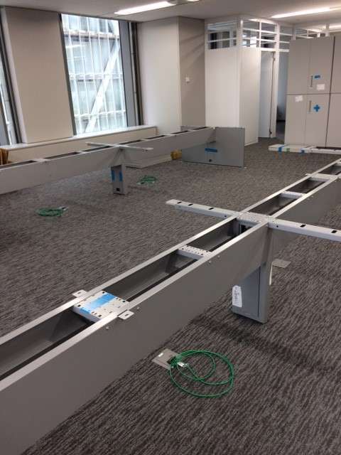 カバー画像は過去事例ですが、オフィス什器工事です。オフィス什器の工事は、大きく分けて4つの時期?タイミングで発生します。最初は、起業・創業時。中古のデスク一つでも起業は可能ですが、中古のデスクにも組立が必要なモノもあります。エントランスを作ったり、執務室と区分けるパーティションが必要だったり、ミーティングルーム・電話LANは?などなど経営者あるいは担当者は頭を悩ませる起業のタイミング。続いては、順調に業績が上がり、若干の増員のタイミングです。現状のオフィスで、増員する為のレイアウト変更が発生します。ここをこうして詰めて、そのスペースに新たにデスクを。というケース。ちょっとした移動なのですが、単体のデスクはすぐに動かせても、配線(電話LAN)が椅子の真下に来たりします。思っている以上に大変な作業です。
