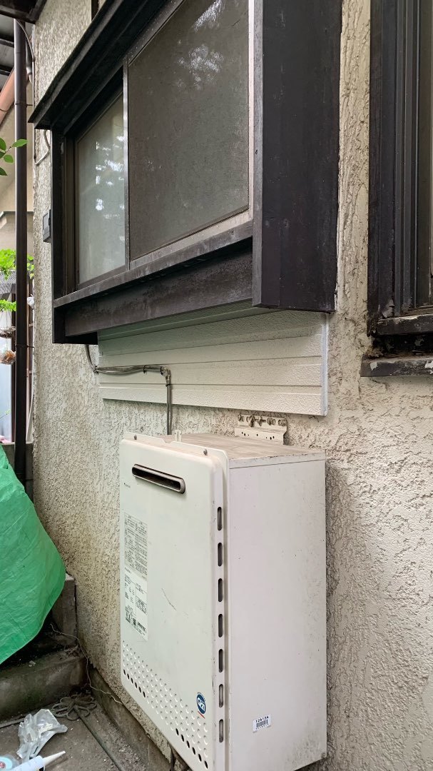 設備工事の続きは、外壁補修作業です。部分補修ではなくサイディングを大きめに貼りました。雨に降られる場所でもなく出窓下ですので、違和感も少なく?収まりました。もちろんお客様は普段通りの生活中、ちょこっとお騒がせしますが、立ち会う必要もなく作業終了です。