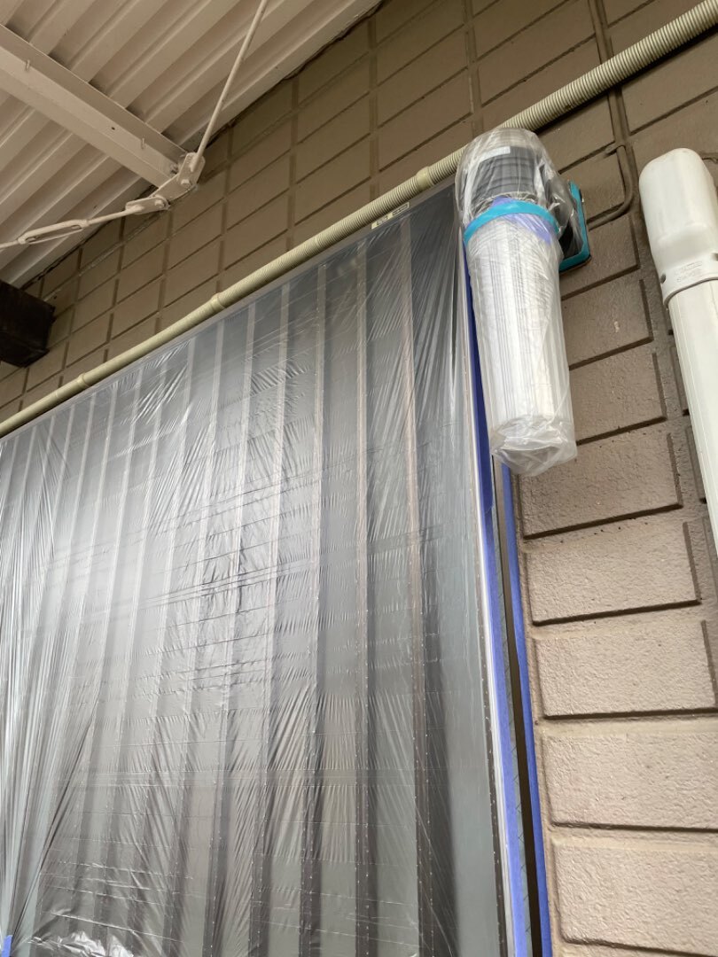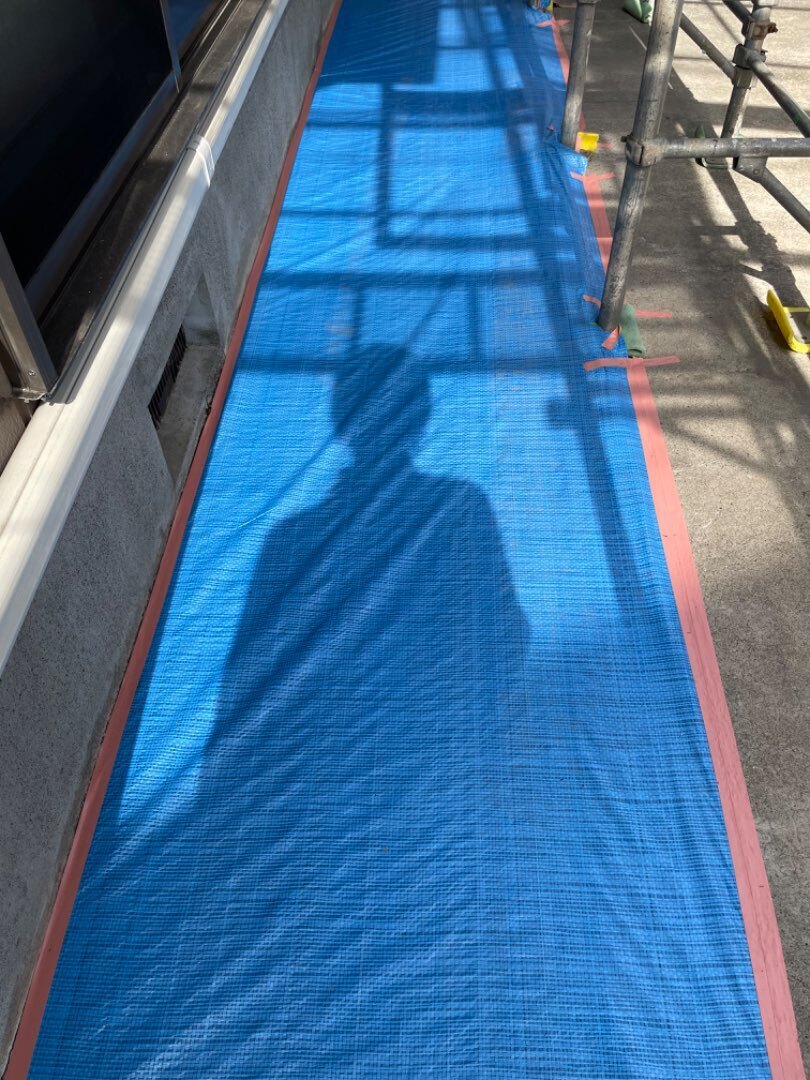 色々同時進行中ですが、外壁塗装工事の段取りも着々と進んでおります。高圧洗浄でのクリーニング作業が終わりタスペーサーの設置も終わりましたので、養生です。これも何度もお話していますが、一番大事と言っても過言ではない養生作業。細部の仕上がりに関わる作業です。