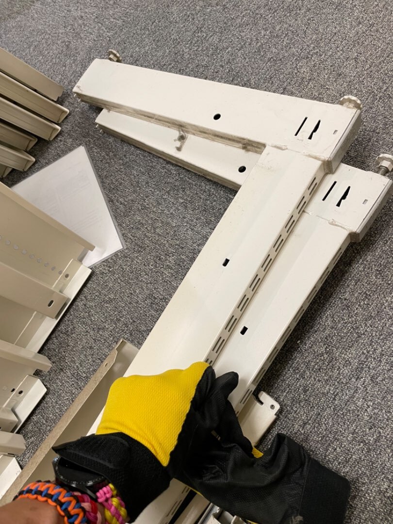 このタイミングに合わせて、不要什器の廃棄も行いました。サンプル陳列などに使われていたのでしょうか、ゴンドラなどと呼ばれる店舗用商品陳列棚も久しぶりに解体しました。昔よく店舗工事をしていた頃を思い出しますね。しかし暑い。皆さん汗だく。水分補給と休憩をしっかりとって、本日もご安全に。