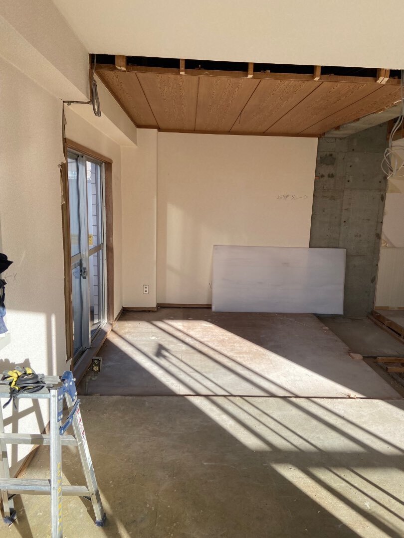 大田区賃貸リノベーション工事、不要な壁などの撤去と搬出を無事に終えまして。さて、今度は作る方へシフトチェンジです。床下の水回りを更新しますので、それに伴い床の開口をしなければなりません。(あ、岸田っぽい言い方。。)