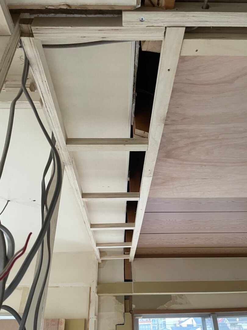 和室と洋室+和室の押入+廊下。と、4つの高さの異なる天井をあーしてこーして。な作業です。今日は節分、本日もご健康でご安全に。