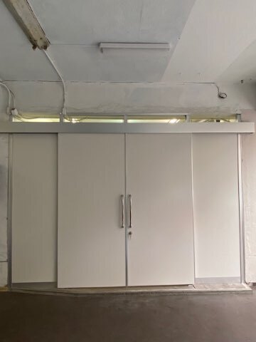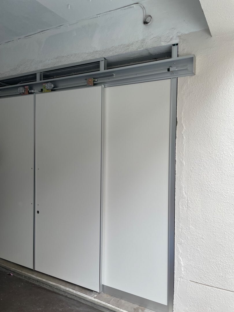 大サービスでレール内部の画像。ダンパー的なモノが入っておりスムーズな開閉が出来るようになっております。そして両開きですので左右の開閉スピードも合わせる必要があり、この調整も職人技です。左右に開いた扉を放すと真ん中でピッタリ合う。そんなスゴ技を駆使し、雑多な物置部屋が綺麗に間仕切られました。今日も暑くなりますね。本日もくれぐれもご健康でご安全に。