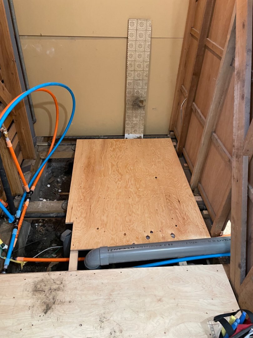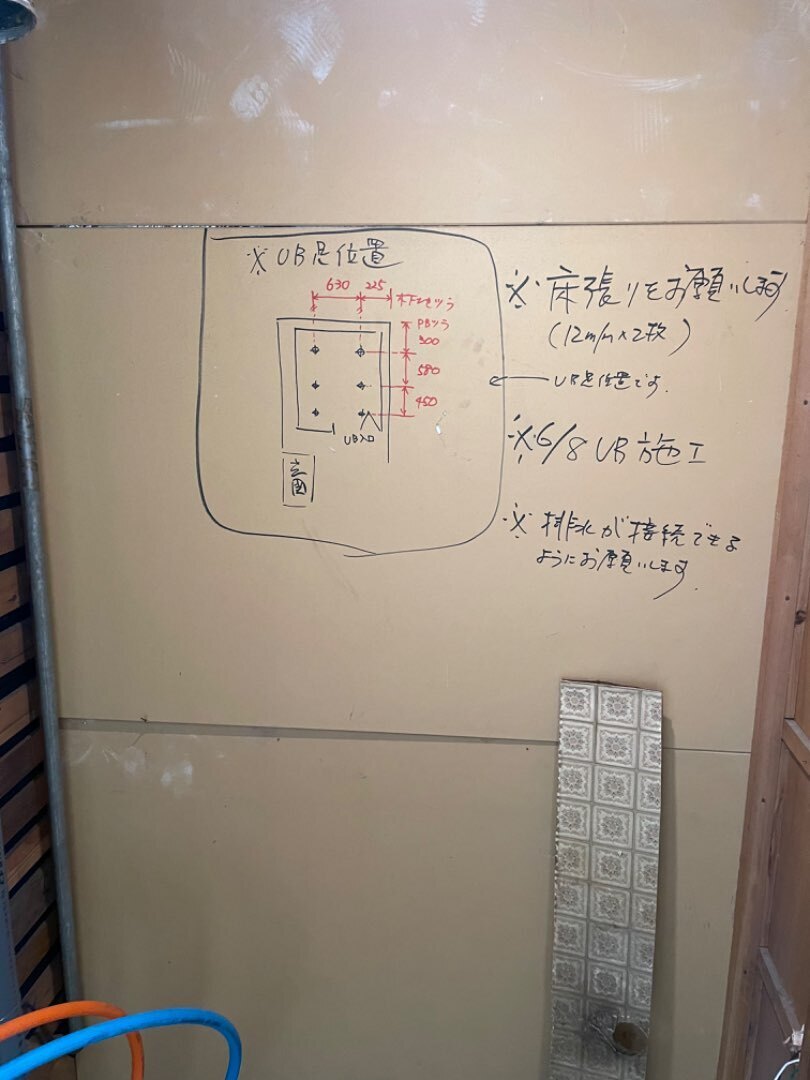 1stと2nd同時進行でワシャワシャしております。。昨日の2ndの模様。2ndは1階なんですよね。搬出入は格段に楽なのですが、ユニットバスを解体したら地面。器用に?大引きの上に既存のユニットバスは設置されておりました。これで新しいユニットバスの設置(は別業者)出来るのかしら。と思っていた所、ユニットバス屋さんからのラブメッセージがありました。