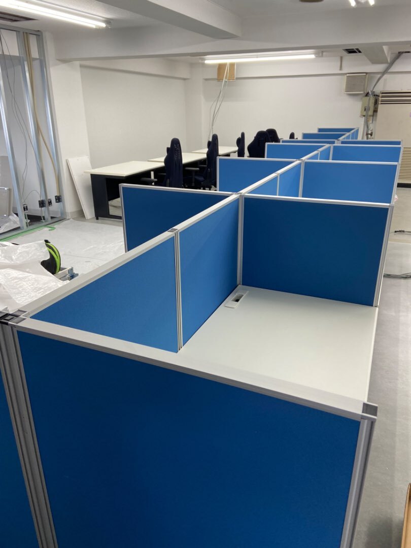 杉並区にて、オフィス家具組み立て作業を行いました。杉並づいています。オフィスの執務スペース他、個々を仕切るパーティションを組み立て設置しました。カバー画像のエリアはWebミーティングなどを行うのでしょうか。最近しっかり区切ったWebミーティングエリアを設ける企業様が増えてきています。Zoomが当たり前になったアフターコロナでオフィス内が変わった事象のひとつです。