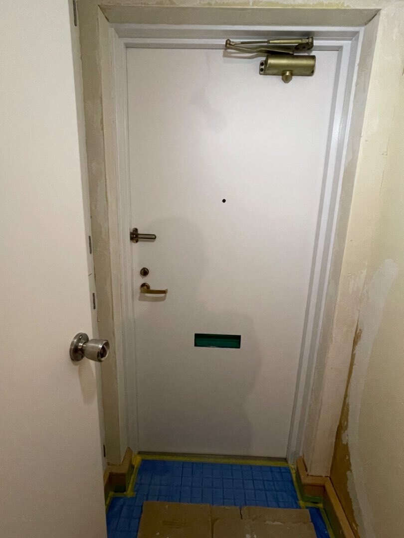 ダイノックシートの他に、サンゲツから発売されているリアテックシートも内装工事では仕上げ材料として多く使用されています。またラインナップが全863点と豊富に存在するため、あらゆるニーズにマッチさせることもできます。アイカ工業からもオルティノフィルムという同等の商品があります。今回はカバー画像の茶色い玄関扉がこのように変身しました。他にも既存のトイレドアや下駄箱扉も綺麗に変身です。まさに変身。という言葉がぴったりな変化を楽しめるシート貼り工事。みなさまのキッチンなどにいかがでしょうか。今朝も寒い!!本日もくれぐれもご健康でご安全に。