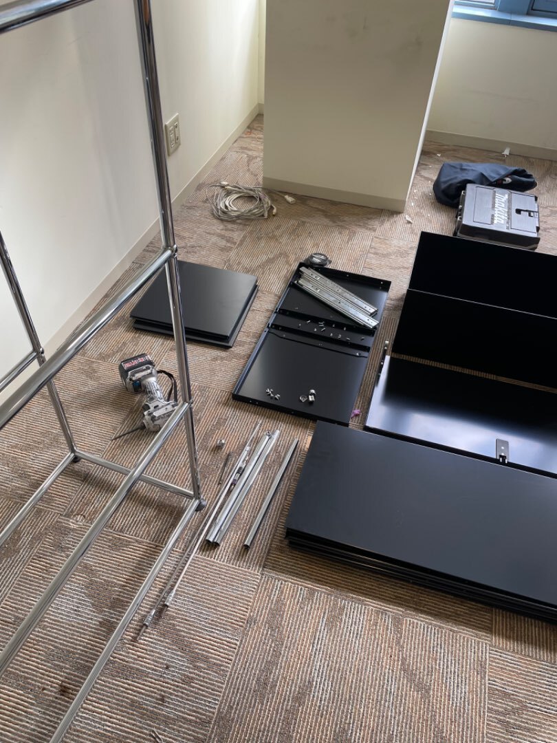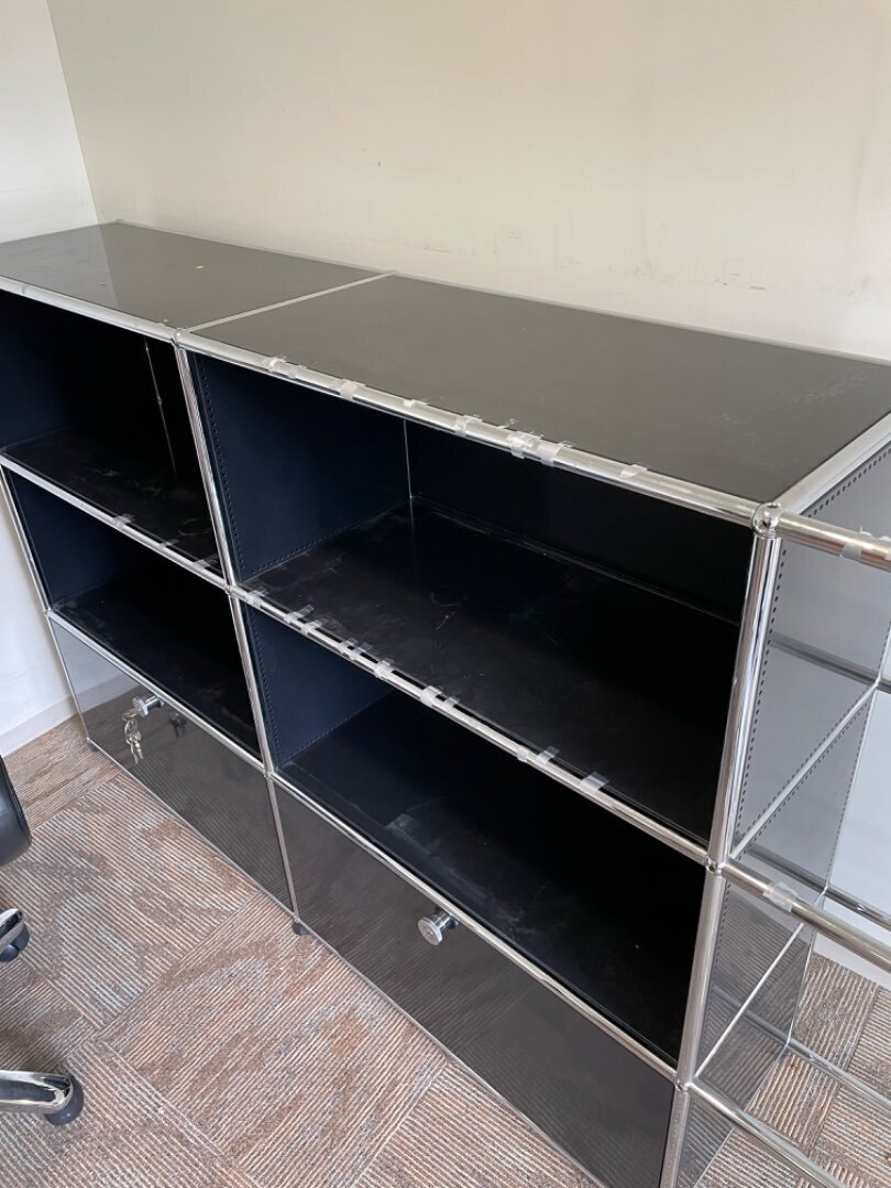 昨日は久しぶりにUSMハラーシステムの工事です。3段3列(下段ラテラルタイプ)の組み換え作業を行ってきました。こちらを4段2列へと変えてゆきます。複雑な構成をしている特殊な什器ですので、色々と頭をフル回転させて作業します。