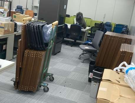 そんなこんなな日々を繰り返しながら、今日に至ります。何の話?? パーティションも解体してこのように並ぶと綺麗ですね。おっと、画像の奥には、、いつぞやのワンちゃんが定位置に座っています。このように同じ企業様に何度も伺うこともしばしば。そんなオフィスのスペシャリスト集団が弊社。と、いうことにしておきましょう。みんな仲良く。本日もくれぐれもご健康でご安全に。