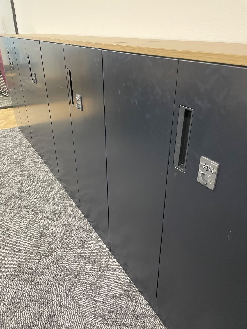 オフィス什器はグレー(ねずみ色)・アイボリー?の時代から、白が主流になり随分経ちますが、最近は黒が人気です。白い壁面にはアクセントにもなりますし、壁自体をグレーなどの色味を多用するオフィスも目立ちます。平成15年に個人情報保護法が施行され、鍵付きの書庫が必須となり、オープン書庫に書類を保存する企業も激減しています。