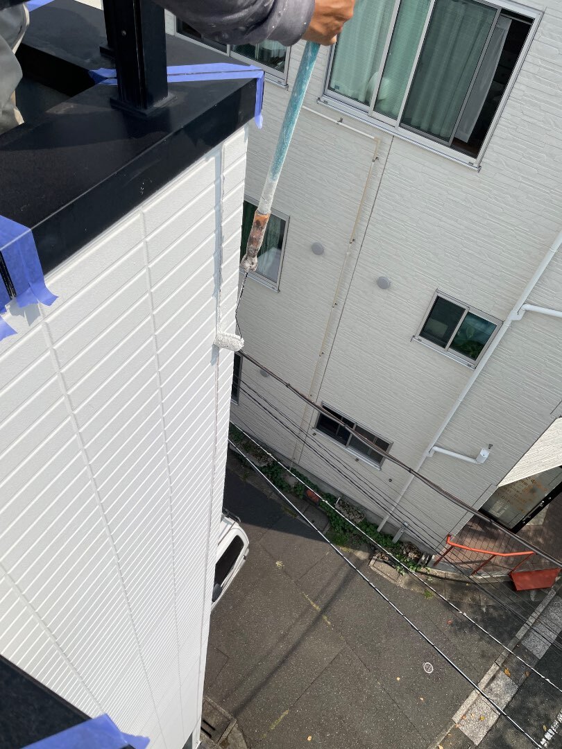同時に痛みが出てきだした外壁部分(角)を塗装しました。屋上から伸縮棒で延長しながらの作業。この高さですので、ちょっと怖いです。。どうやらサイディングの「角材」の不足?があったのでしょうか、角材が使われていない箇所が数か所見受けられます。面材を突き付けてシーリングで仕上げている様子で、その部分に痛みが出だしている状態でした。中長期的なメンテナンス計画を考えるにあたり、今は軽微な補修で済ませ、今後訪れる外壁塗装のタイミングでしっかりやり変えましょう。というプラン。「ひとまずお薬出しますので、安静にして様子を見ましょう。」というお医者さんの様な気持ちになります。なんでも切って手術すれば良いってもんじゃないですもんね。何でも話せるかかりつけの主治医。そんなお宅のホームドクターになれれば良いですね。 高校野球も終わり夏の終わりも近づく中、猛暑は続きます。。本日もくれぐれもご健康でご安全に。