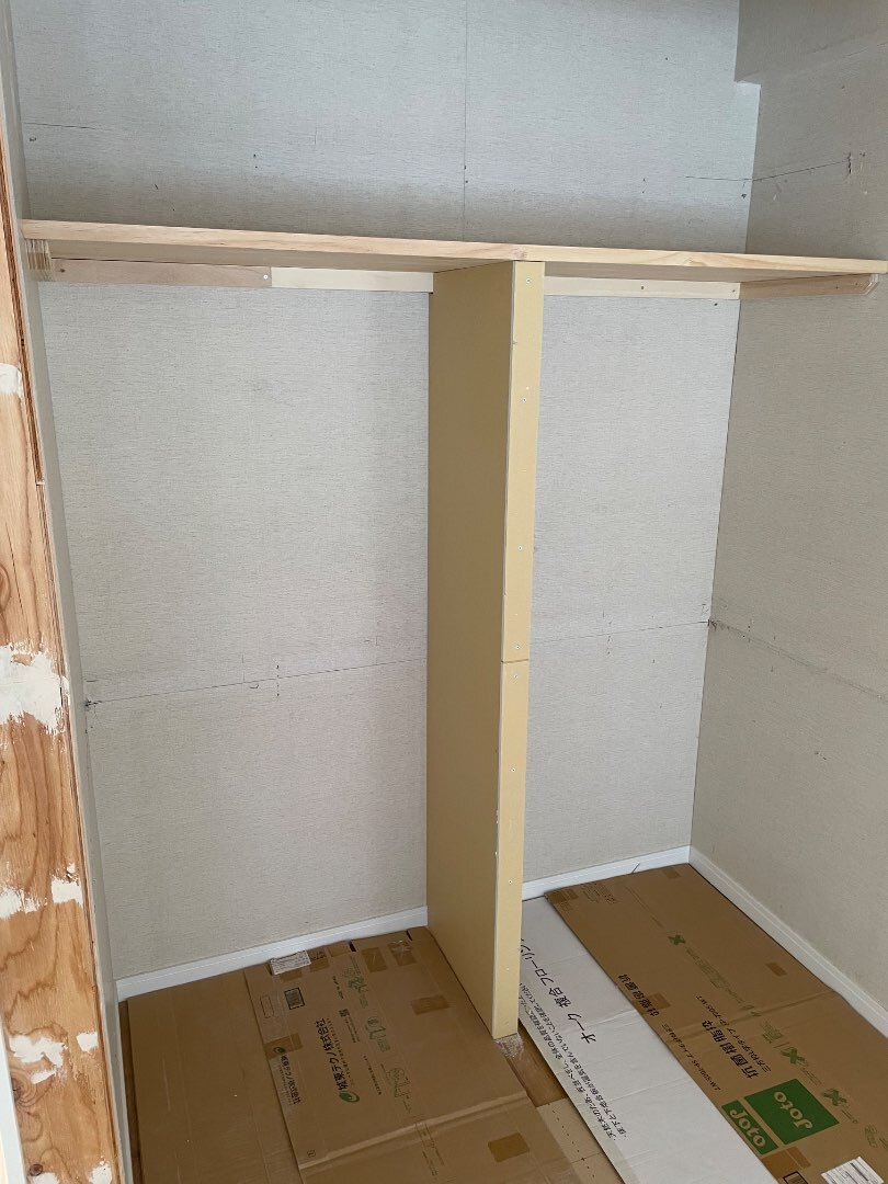 昨日の焼きそば屋さんから一転、午前中は大工さん。垂れ壁を作ったり、クローゼット内の造作作業を行いました。扉無しのオープンクローゼットです。上部にはパイプが付きますので、お好みのカーテンなどで仕切れるようになります。この棚の下にもパイプが付き、ハンガーを掛けられる便利な収納に進化します。この物件、このようなオープンクローゼットが後2箇所あります。全部仕上げちゃおうか。。と思いきや、あれ?。材料が無い?いや、違う材料が入っている。。サイズが違う。。ドンマイ。
