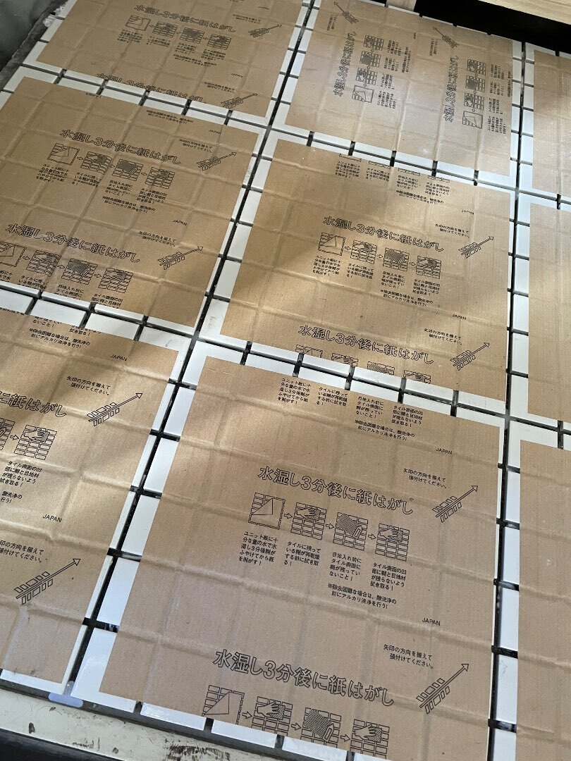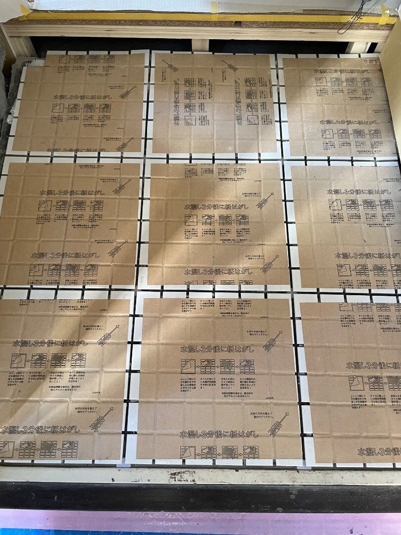 中野区リノベーション現場でタイルを貼りました。毎回タイミングが難しい玄関のタイル貼り作業。土曜日のお昼にサッと貼ってきました。接着までに時間が掛かりますし、玄関ですのでもちろんその間は通行出来なくなります。他の作業と同時進行がなかなか難しい作業です。