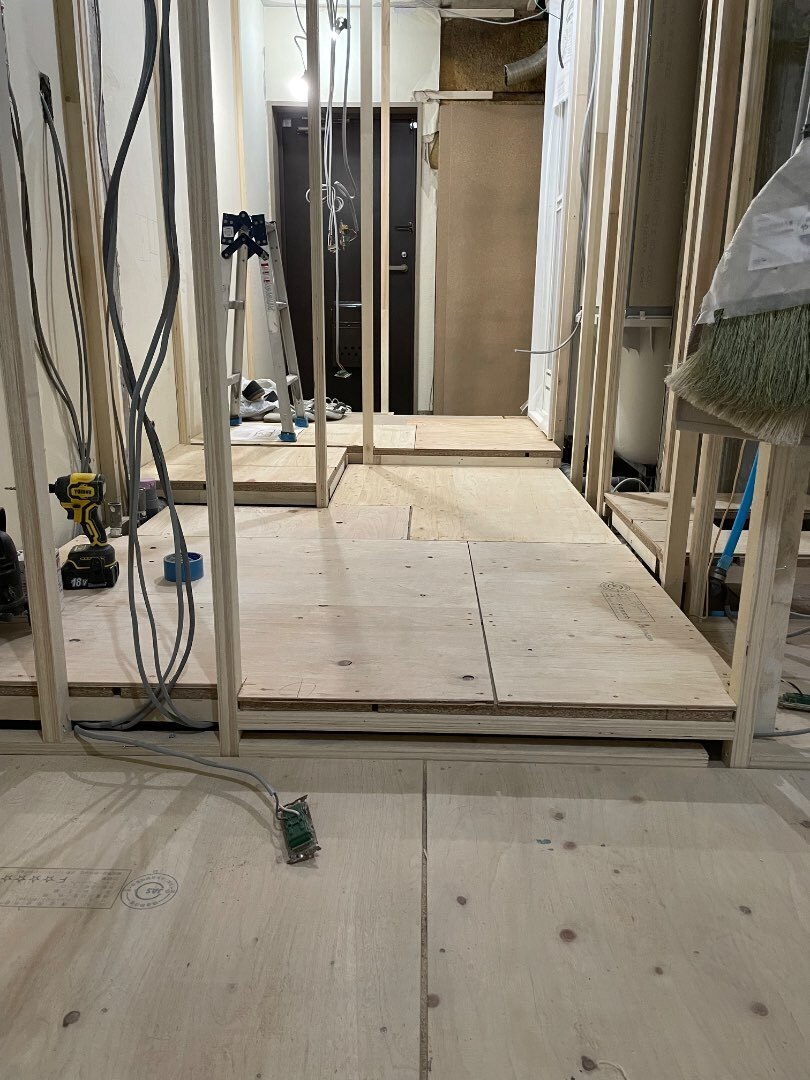 世田谷区のリノベーション現場、床工事が長引いてます。全体的に床上げした所から変更したのがカバー画像。2度目の床貼り作業。更にこちらが3度目。そして昨日4度目で決まりました。やはり大規模な水回りの移設は綿密な計画が必要ですね。